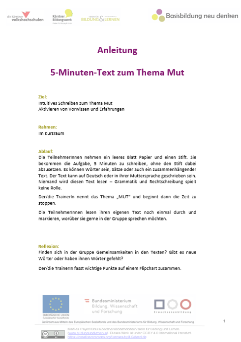 Anleitung für Trainer*innen: 5-Minuten-Text zum Thema Mut