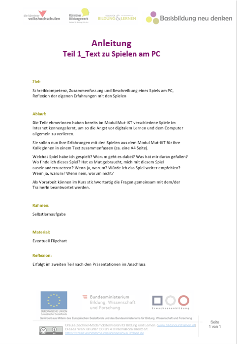 Anleitung für Trainer*innen: Text zu Spielen am PC