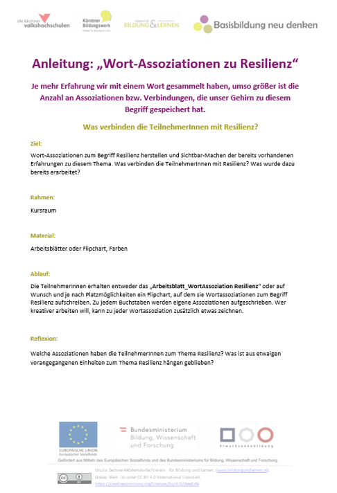 Anleitung zum Arbeitsblatt: Wortassoziationen zu Resilienz
