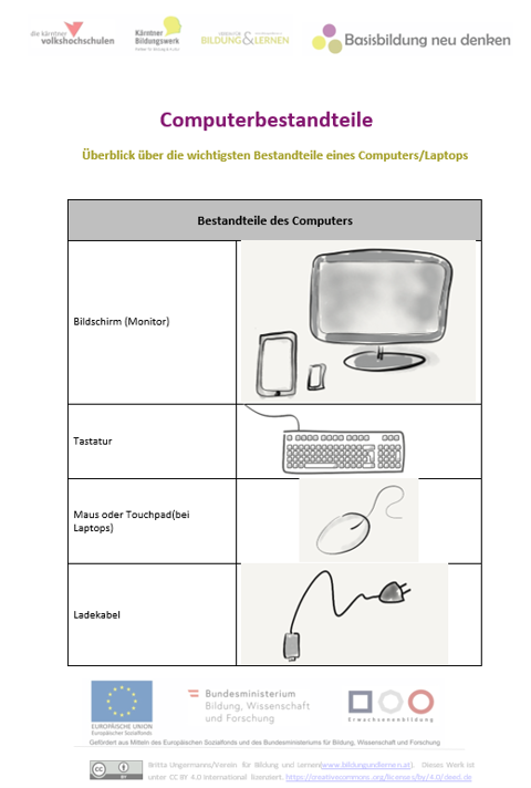 Überblick über die wichtigsten Bestandteile eines Computers/Laptops.